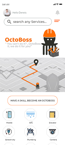 Pour les clients connectez-vous avec votre numéro de téléphone/courriel, trouvez le service dont vous avez, discutez avec un/une octoboss ou si vous n'avez pas le temps, postez simplement votre problème avec votre budget, les octoboss les plus proches de chez-vous discuteront avec vous.